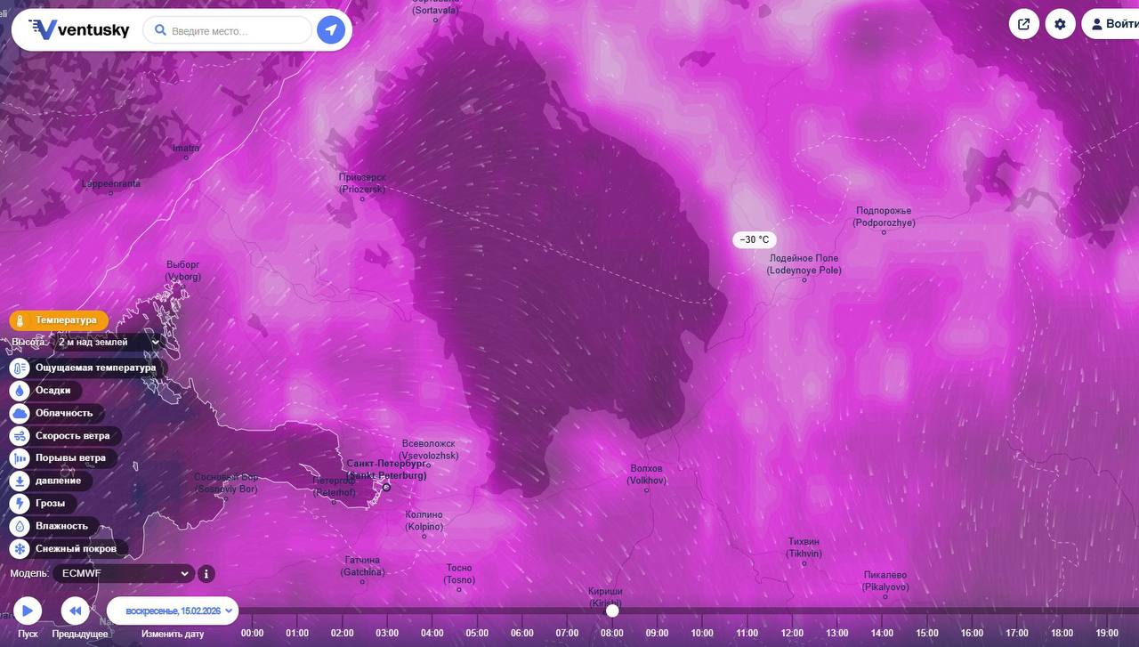 — –28…–34°C в Псковской, Новгородской, Ленинградской, Вологодской областях, Карелии и Санкт-Петербурге.