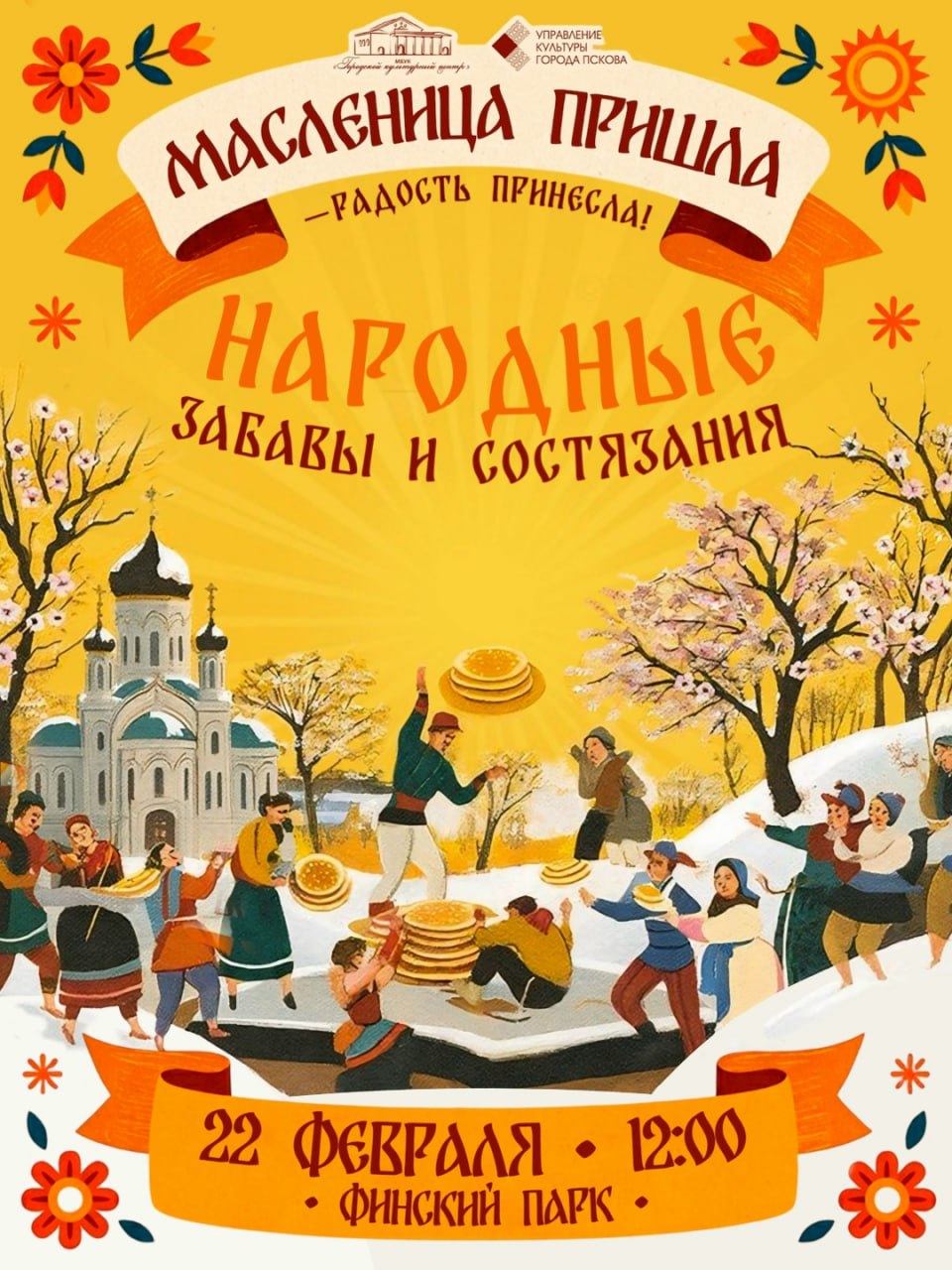 22 февраля в 12:00 в Финском парке состоится широкое празднование Масленицы, организованное Городским культурным центром Пскова.