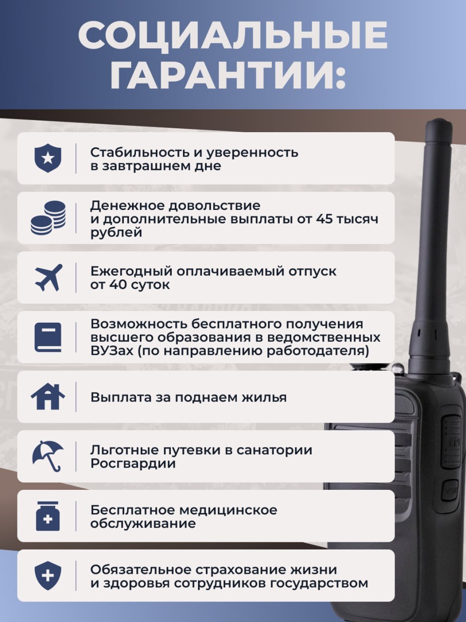 ФГКУ «Отдел вневедомственной охраны войск национальной гвардии Российской Федерации по Псковской области» объявляет набор сотрудников на службу в регионе.
