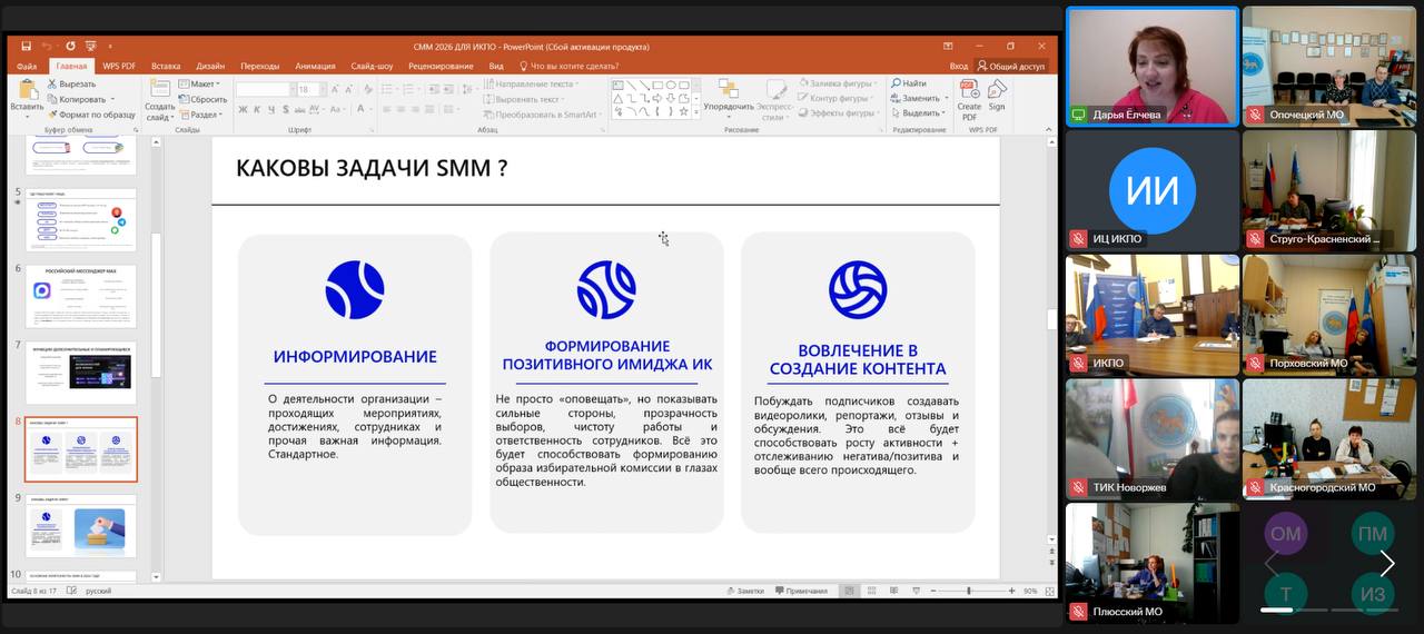 17 февраля в формате ВКС состоялся обучающий семинар по работе в социальных сетях для сотрудников избирательной системы Псковской области