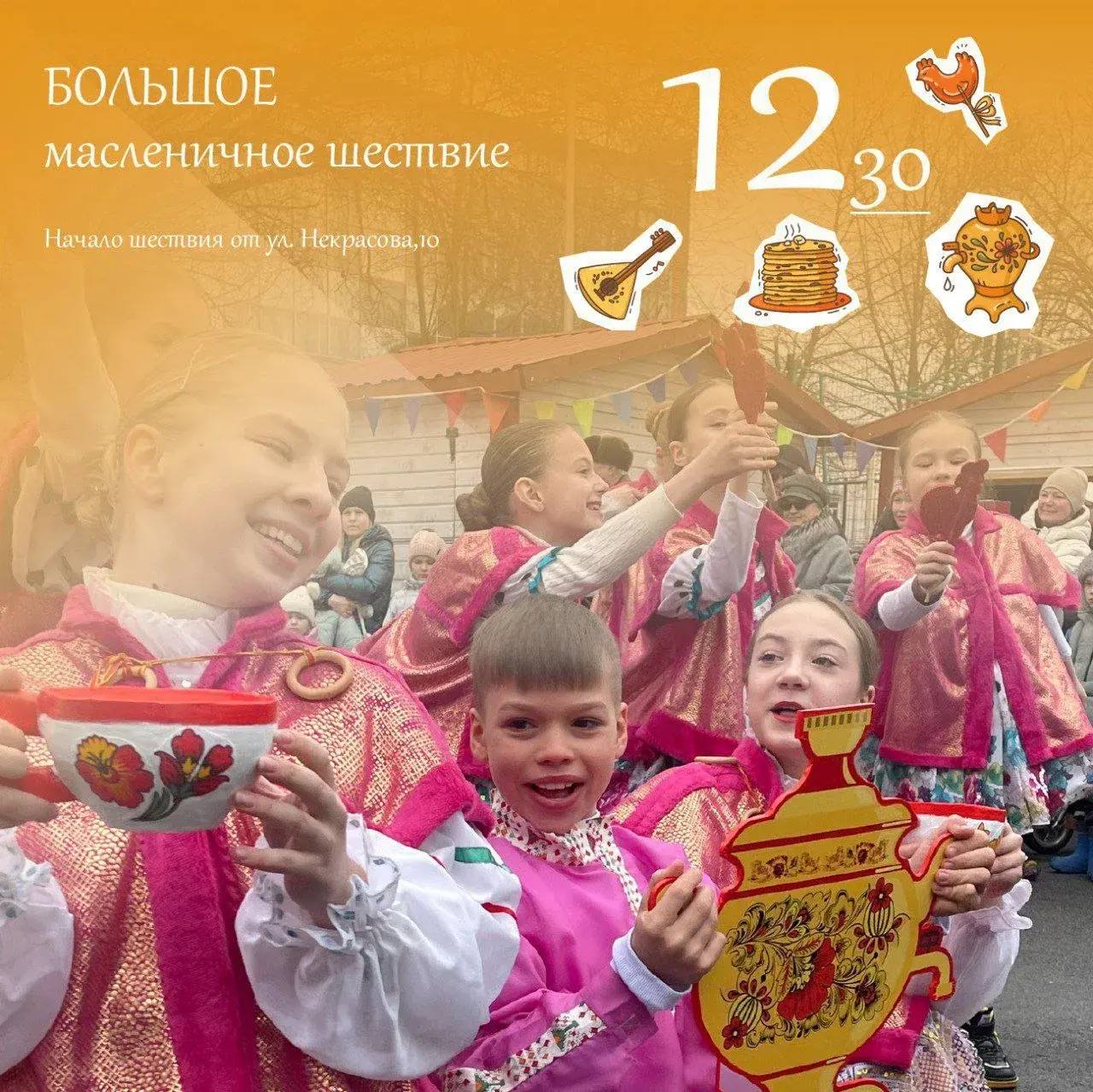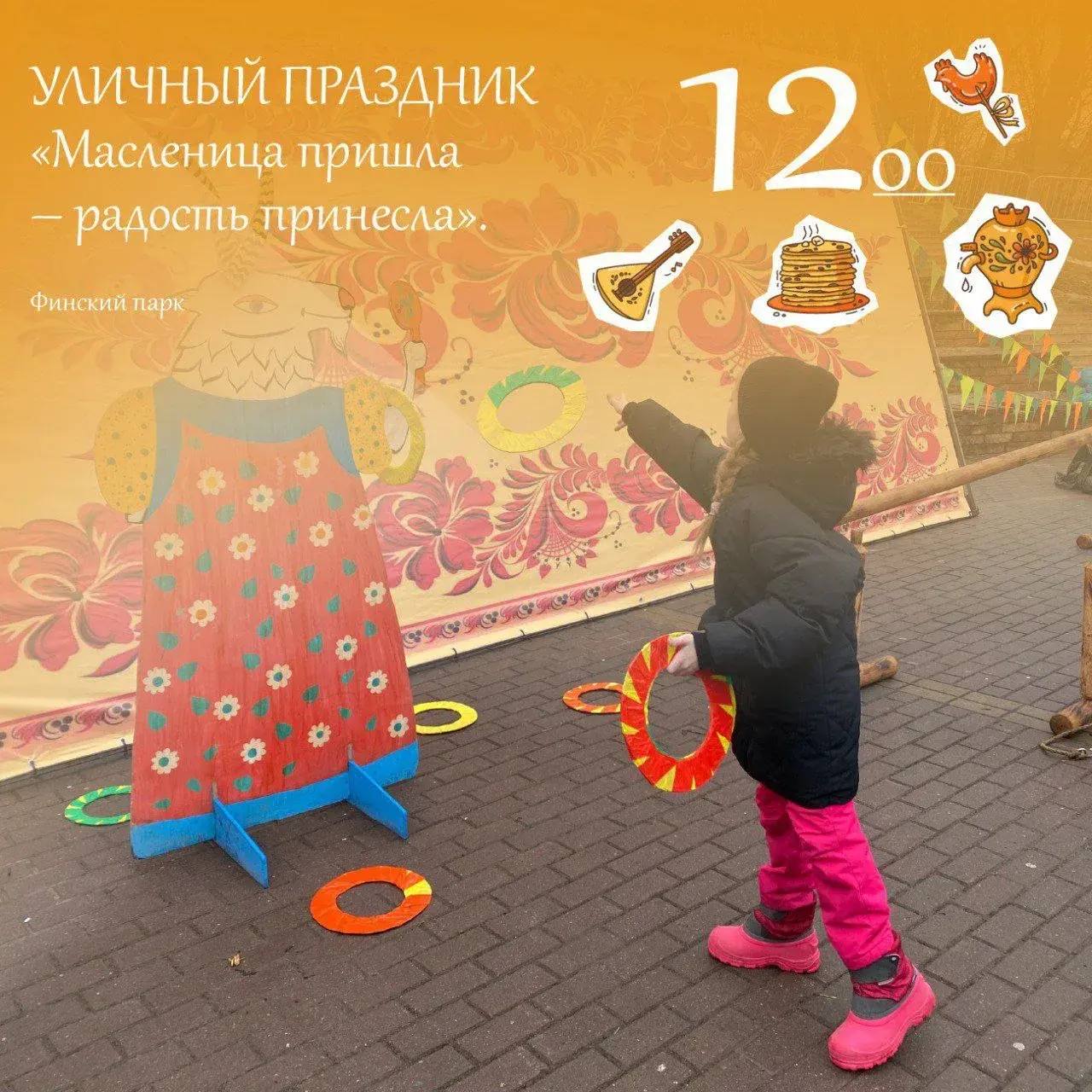 В этом году главный праздник состоится 22 февраля в Финском парке с народными гуляньями, забавами и конкурсами. Будет вкусно, жарко (несмотря на зиму) и очень душевно. А если позволит погода, то кульминацией праздника станет сожжение чучела Масленицы! Приходите сами, зовите друзей и родных!