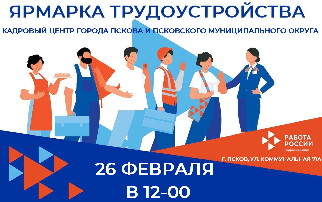 26 февраля с 12:00 в Кадровом центре Пскова (ул. Коммунальная, 71А) пройдет ярмарка трудоустройства, посвященная Дню защитника Отечества.
