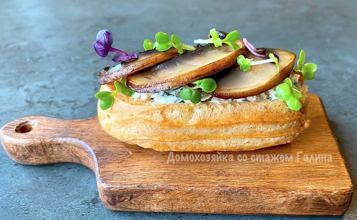 На начинку выложите обжаренные шампиньоны, украсив зеленью. Это не только сделает закуску более аппетитной, но и добавит ярких красок на стол. Подавайте эклеры сразу после приготовления, чтобы насладиться их нежным вкусом.