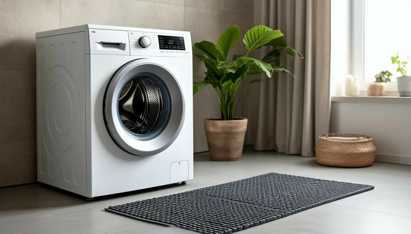 Если пол в ванной не идеален, это может усложнить ситуацию. В таком случае вам помогут антивибрационные коврики или накладки. Эти приспособления из резины или полиуретана поглощают вибрации и предотвращают движение машины, а также защищают ваш пол от повреждений.