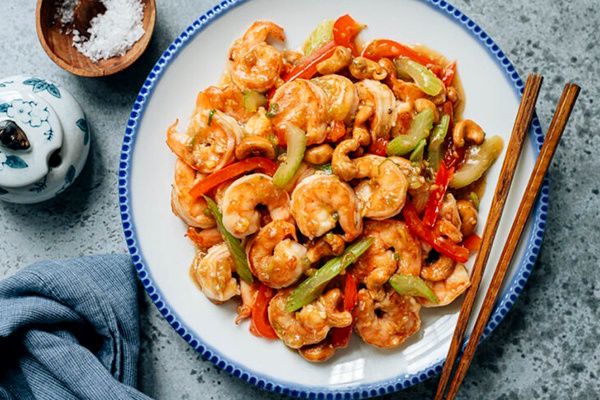 Сочетание нежнейших креветок, ярких овощей и поджаренных орехов кешью создает удивительное блюдо, гармонично дополненное легким и насыщенным белым соусом на основе куриного бульона, соевого и устричного соуса. Этот простой в приготовлении рецепт гарантирует ресторанный уровень подачи и, конечно же, быстро исчезнет со стола.
