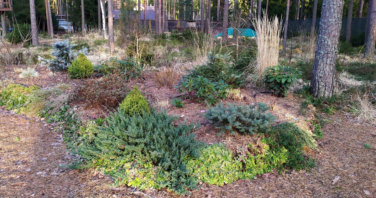 Март все еще держит зиму в своих объятиях, и большинство растений остаются неузнаваемыми, потому что зимние хвойные не сменили радикально свой облик.