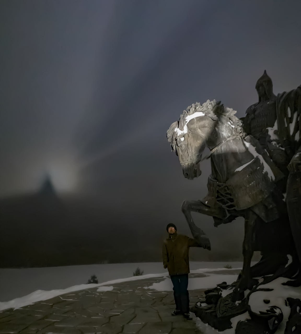 Броккенского призрака увидели два псковича у мемориала «Князь Александр Невский с дружиной» на берегу Чудского озера в ночь на 23 февраля.