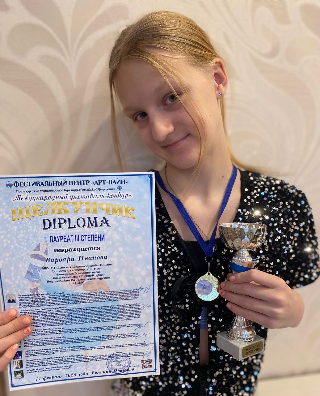 Учащиеся класса эстрадного вокала Детской школы искусств Детской школы искусств успешно выступили на Международном фестивалеконкурсе «Щелкунчик». Конкурс отличался высоким уровнем исполнительского мастерства участников и авторитетным составом жюри.