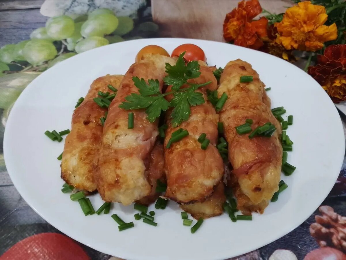 Запечённые рулетики из куриного фарша, укутавшиеся в бекон, не оставят равнодушными даже самых требовательных гурманов. Хрустящая корочка внешней оболочки сочетает в себе нежность и аромат, что делает это блюдо идеальным для любой трапезы.