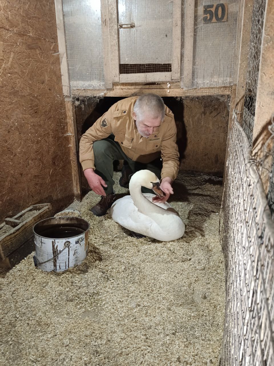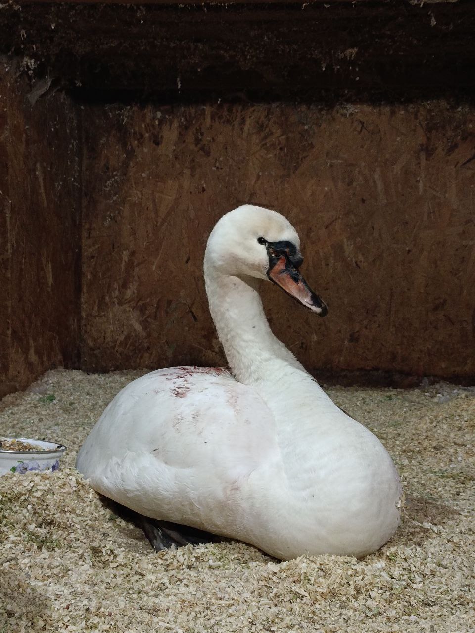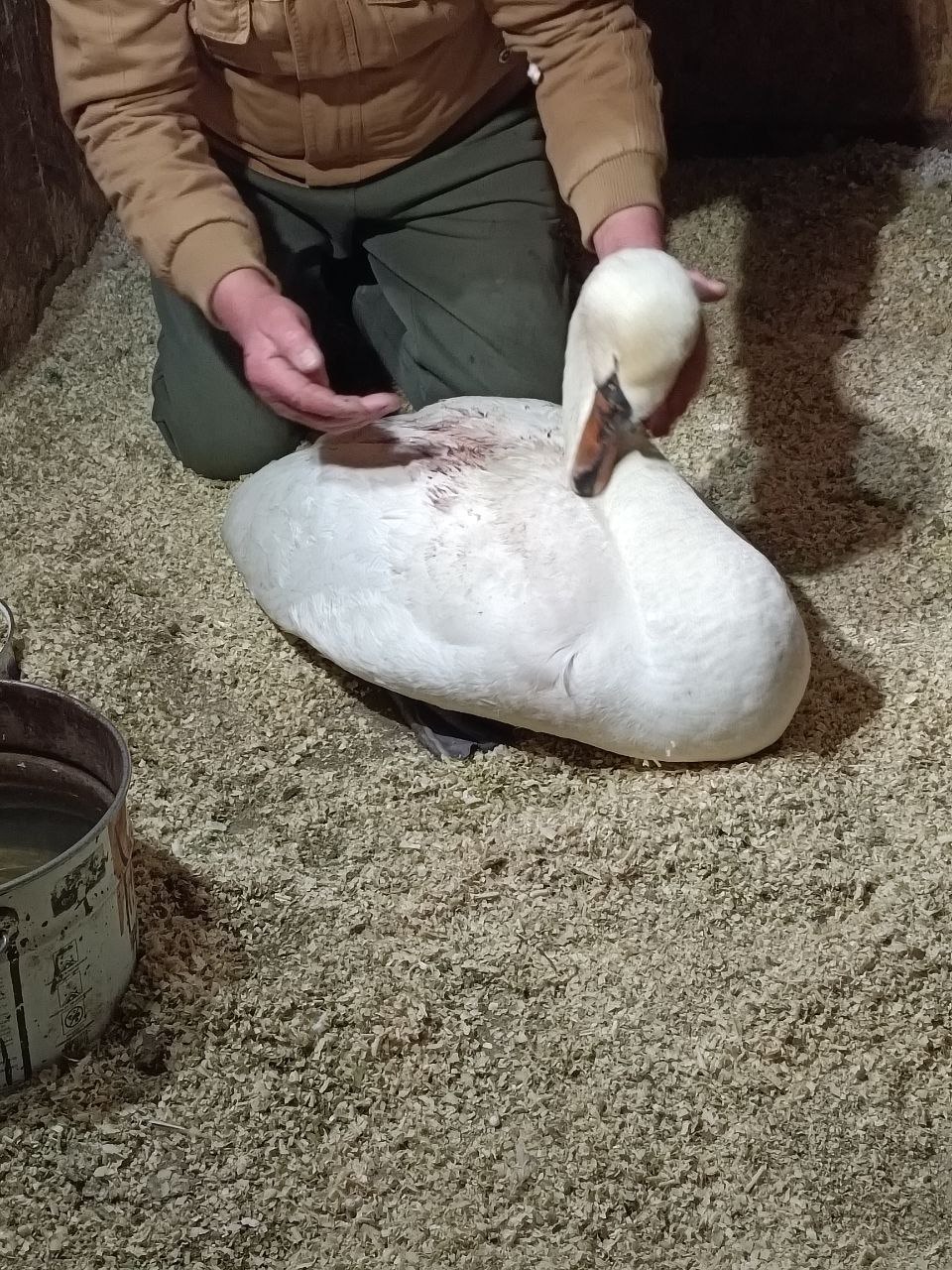 Хорошие новости из "Птичьего дворика". Лебедь, которого здесь выхаживают, идет на поправку и чувствует себя лучше.