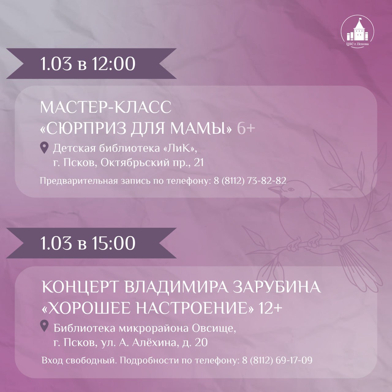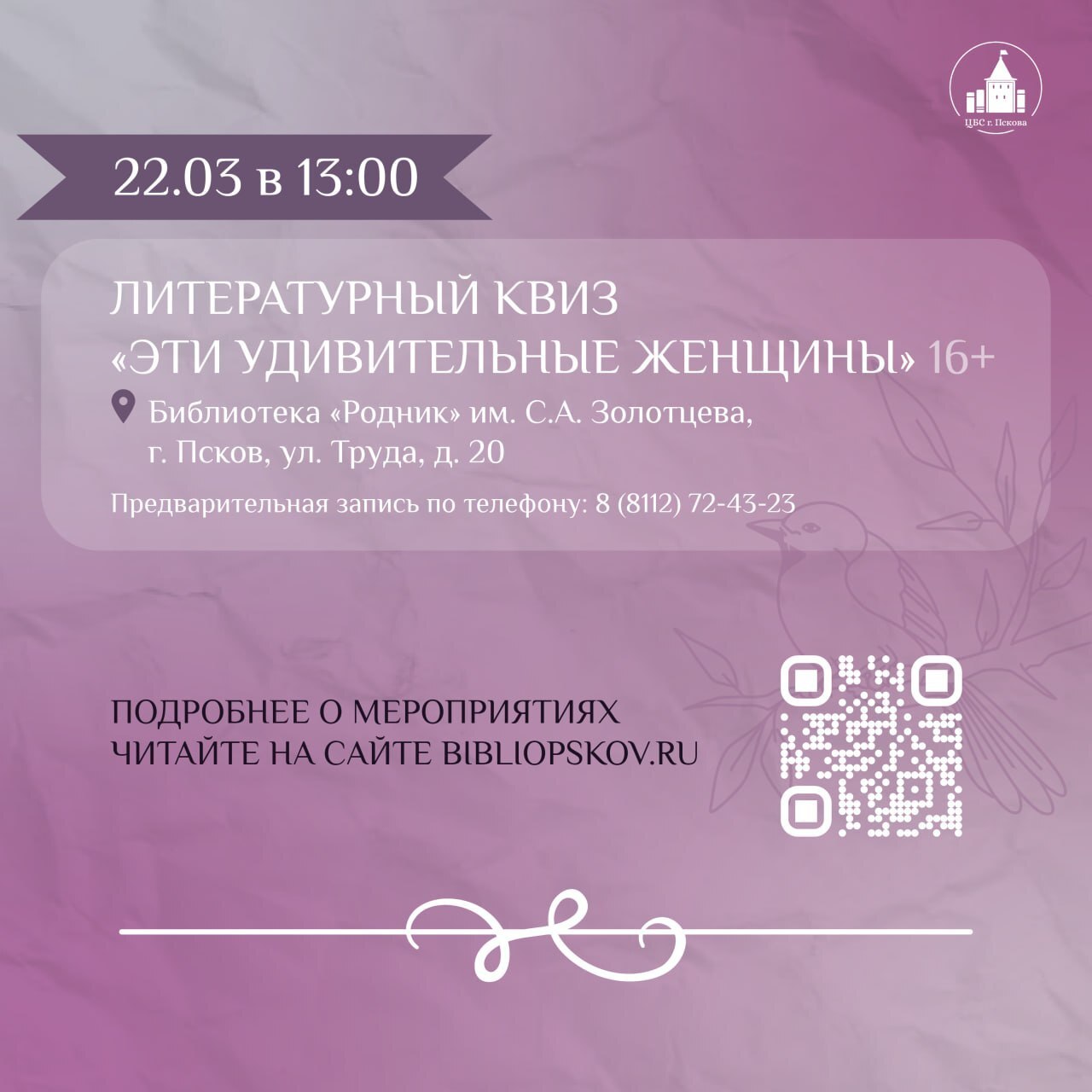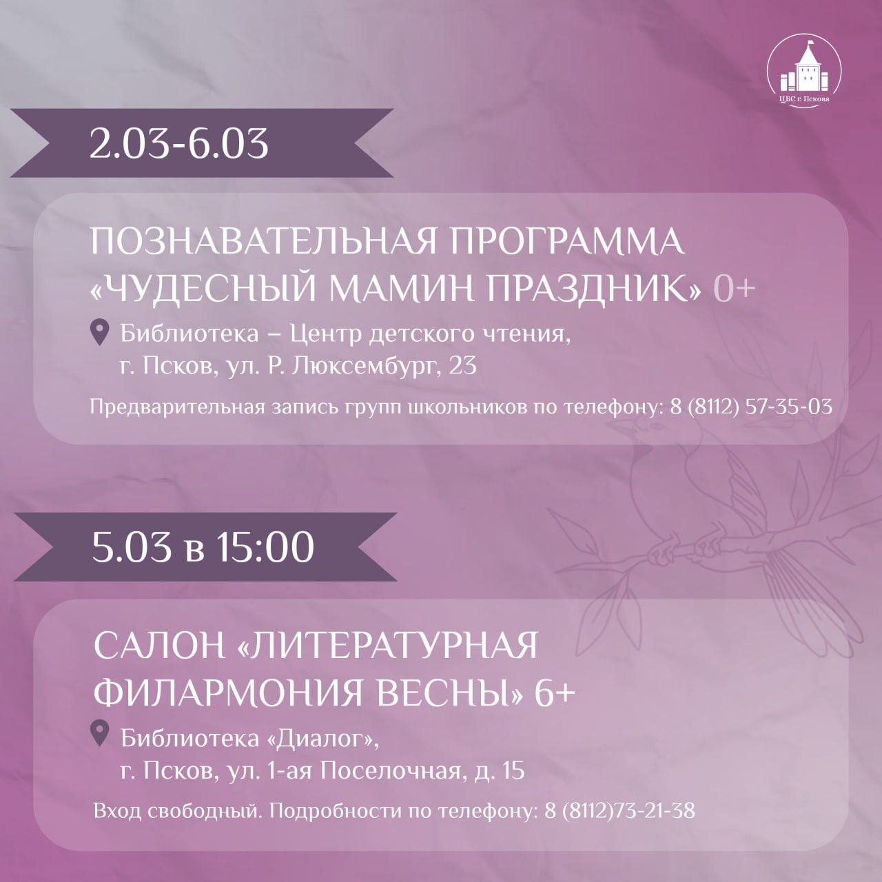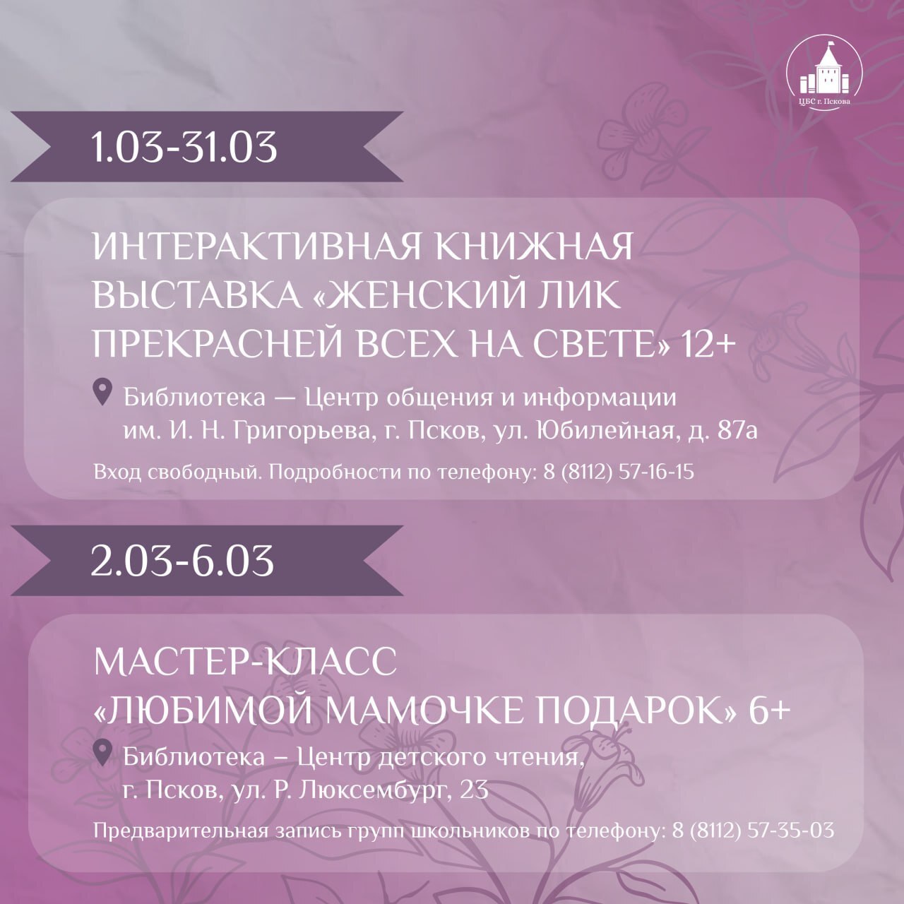 Библиотеки приглашают псковичей отметить Международный женский день вместе!