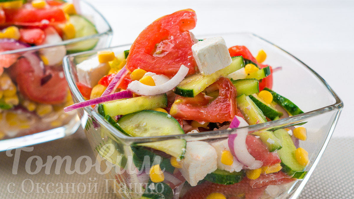 Летний салат с сыром фета — это легкое и яркое блюдо, которое идеально подходит как для повседневных обедов, так и для праздничных застолий. Сочетание свежих овощей и солоноватого сыра фета создает незабываемый вкус, а добавление сладкой кукурузы придаёт салату особую изюминку. Он отличается простотой приготовления — всего 10 минут, и вы сможете насладиться великолепным вкусом, когда продукты созревают на грядках.
