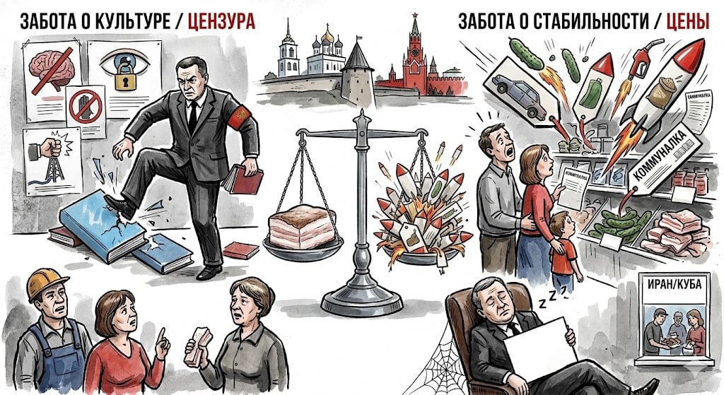 Казалось бы, демиурги режима озабочены главным — стабильностью. Лодку не раскачивать, устои не шатать, общество не бесить. Задача благородная, откуда ни посмотри. Любой нормальный человек не хочет жить в эпоху перемен и великих потрясений. Народ вообще устроен довольно-таки примитивно: люди хотят спокойствия, понятного сегодня и уверенного завтра.