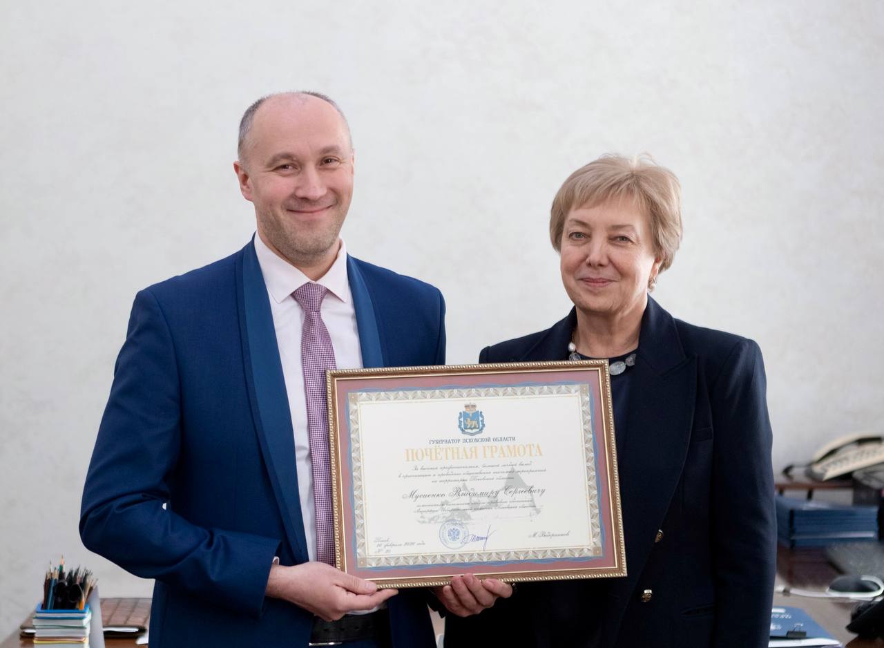 Вчера Первый заместитель Губернатора Псковской области Вера Емельянова вручила Почётную грамоту Губернатора Псковской области заместителю начальника отдела правового обеспечения Избирательной комиссии Псковской области Владимиру Мусиенко.