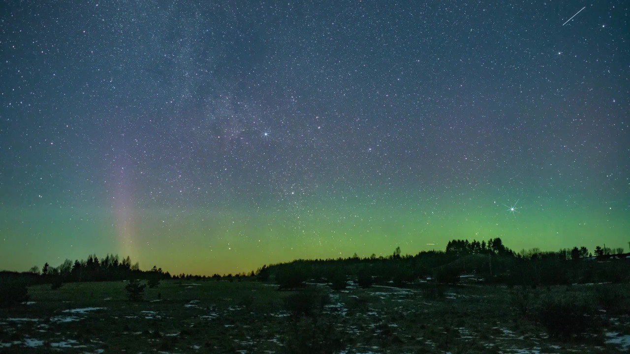 Заходящий Орион, зимние созвездия и место, где космос встречается с землёй. Полярное сияние над Изборско-мальской долиной накануне 8 марта заснял астролюбитель Пётр Митрофанов.