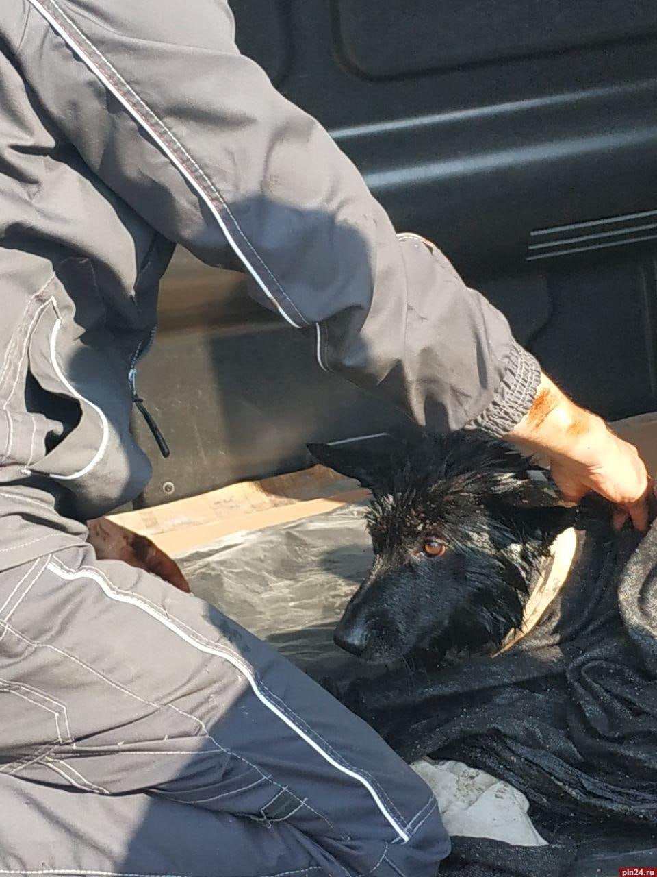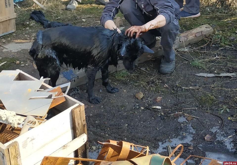 Упавшую в ёмкость с мазутом собаку спасли неравнодушные псковичи в микрорайоне Любятово, сообщили в зооприюте «Шанс».