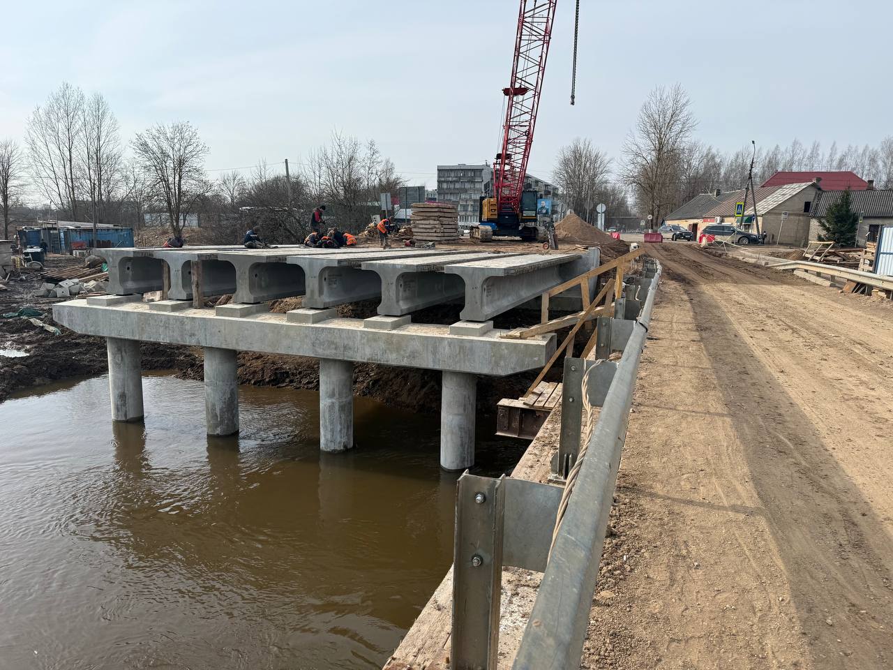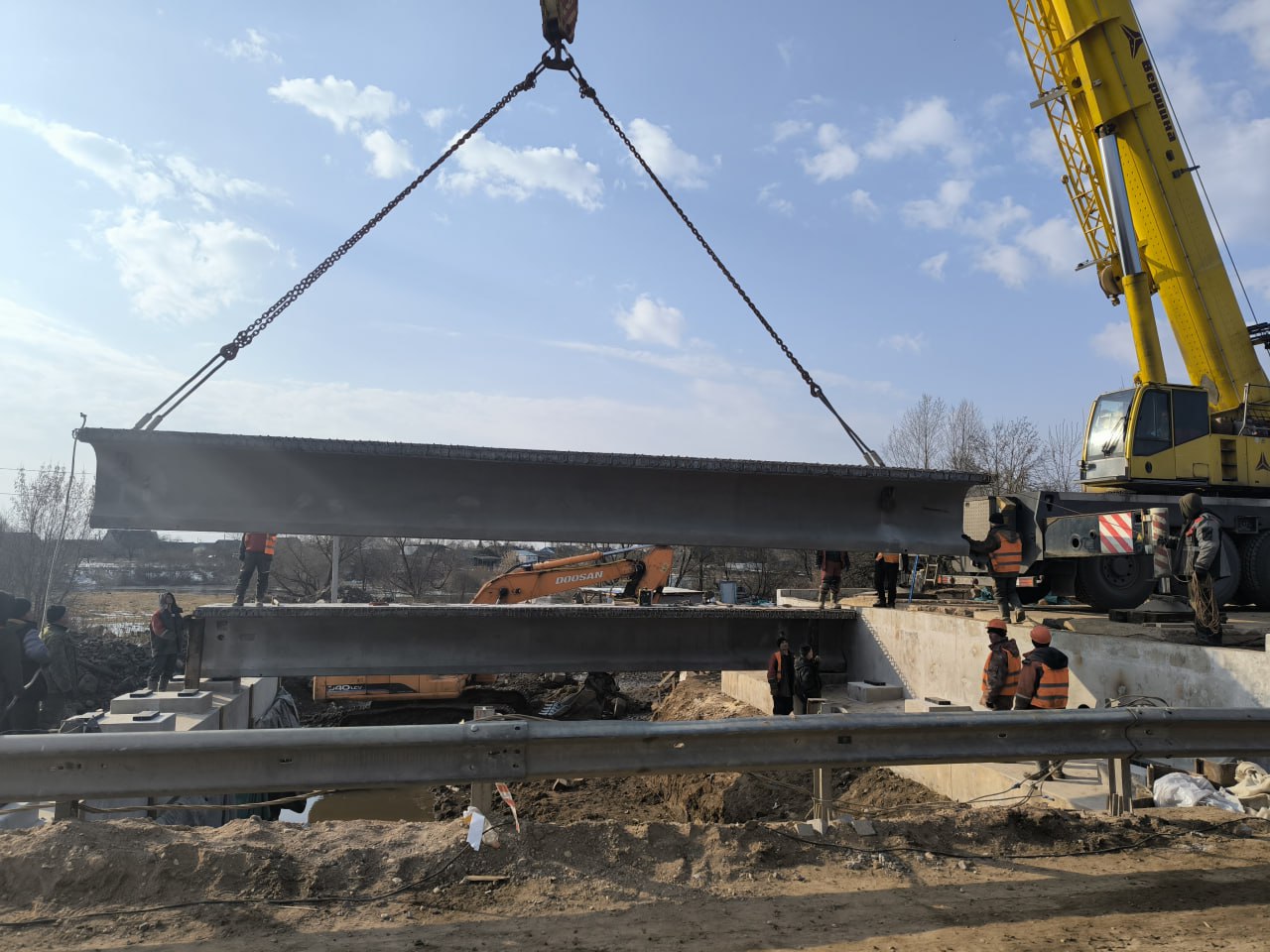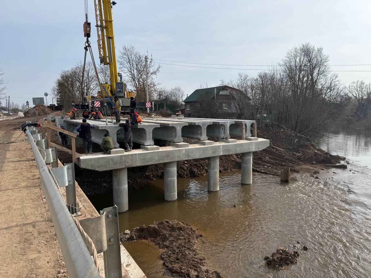 На мосту через реку Утроя начался монтаж балок пролётного строения