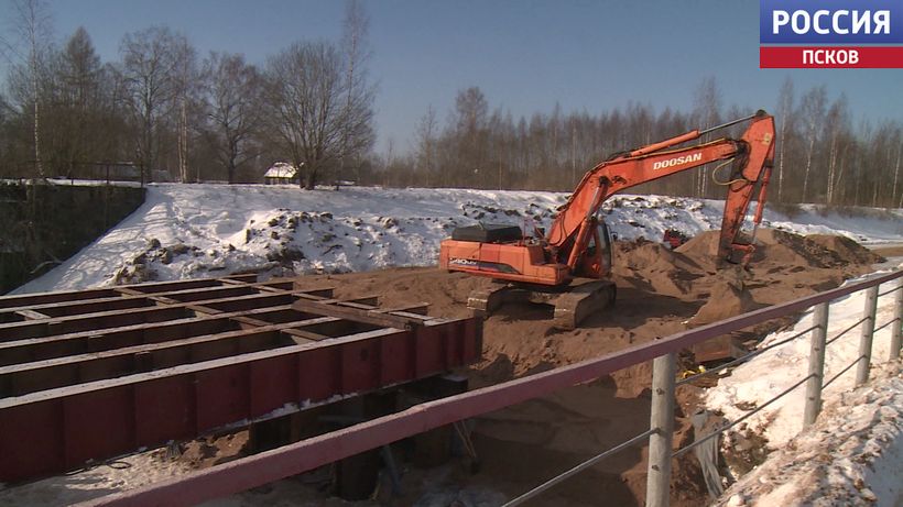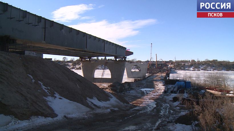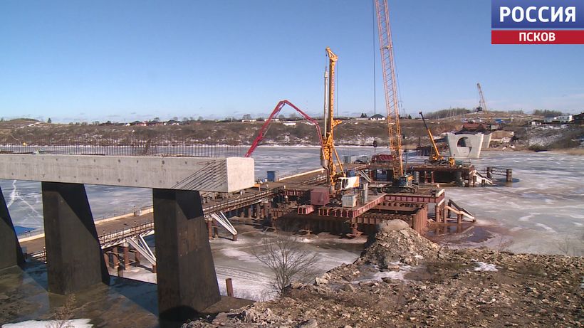 Это объекты в Пыталовском, Гдовском, Бежаницком, Островском и Псковском муниципальных округах. Один из самых крупных проектов - строительство моста через реку Великую. Это часть объездной дороги вокруг Пскова, Северного обхода. Новый мост возводят в рамках нацпроекта "Инфраструктура для жизни". Сейчас ведутся работы по заливке двух бетонных опор. Всего их будет шесть. На опоры будет надвигаться металлическая конструкция, затем устанавливаться бетонные плиты, заливаться асфальт. Окончание работ запланировано на конец 2027 года.