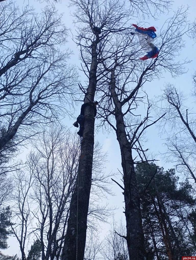Парашютистку сняли с дерева псковские спасатели на площадке «Кислово»