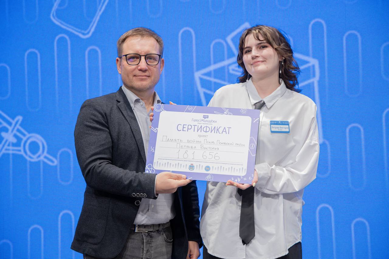 Одним из них стал «Память войны. Псков. Псковский район». Автор проекта — Виктория Петрова, на момент защиты — ученица 10 класса МБОУ «Средняя общеобразовательная школа № 2» города Пскова, на сегодняшней день — ученица 11 класса этой же школы.