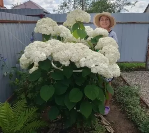 Специфика ухода заключается в регулярном поливе раз в две недели, что, по словам хозяйки, необходимо, так как в данной местности довольно влажно. Сорта, такие как Аннабель, могут выдерживать разные климатические условия, и это тоже способствует их хорошему состоянию и здоровому цветению.