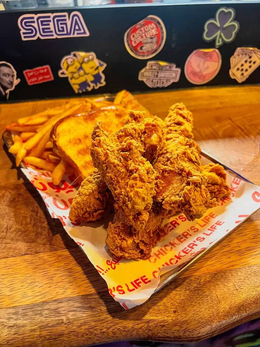 Это кафе стало первым остановкой для обеда. С уютной атмосферой и небольшим количеством столиков, здесь подают изысканные блюда с курицей. Рекомендуется попробовать комбо Solo, которое включает в себя картошку-фри, крупные нагетсы, жареный хлеб и грибное пюре. Такой райский обед обойдется в 38 AED (примерно 870 рублей).