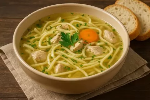 Главная особенность, делающая куриный суп уникальным, — это, конечно, лапша. Именно она придает блюду характер и насыщенность.