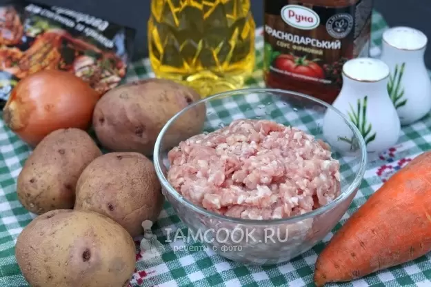 - 500 г картофеля — чистить и нарезать крупными кубиками,