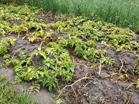 - В дождливую погоду болезнь может быстро передаться клубням;