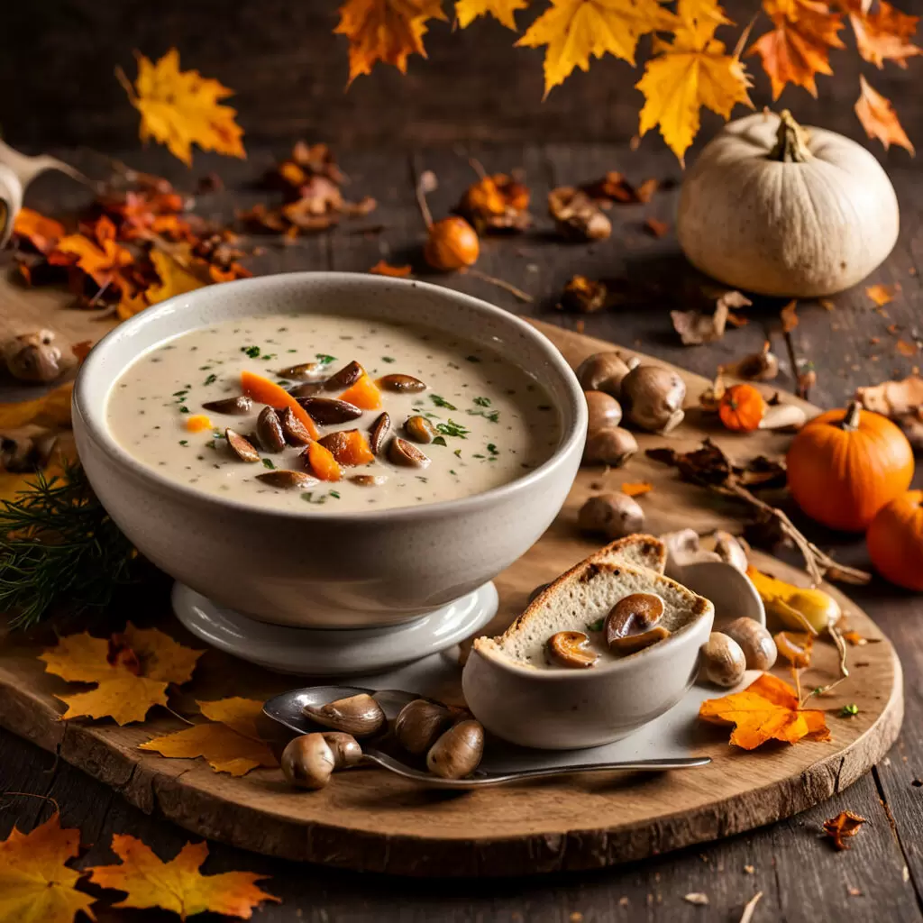 Этот теплый суп восхитительно сочетает нежные шампиньоны и сливки, делая его идеальным для осеннего ужина.