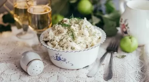Салат из кальмаров не просто привлекателен на вид — он богат белком и йодом, что способствует нормальному функционированию щитовидной железы. Рис добавляет чувство насыщенности, не перегружая при этом организм, а яйца придают блюду ценную аминокислотную составляющую. Эта закуска не только украсит праздничный стол, но и станет легким, питательным вариантом среди других блюд.