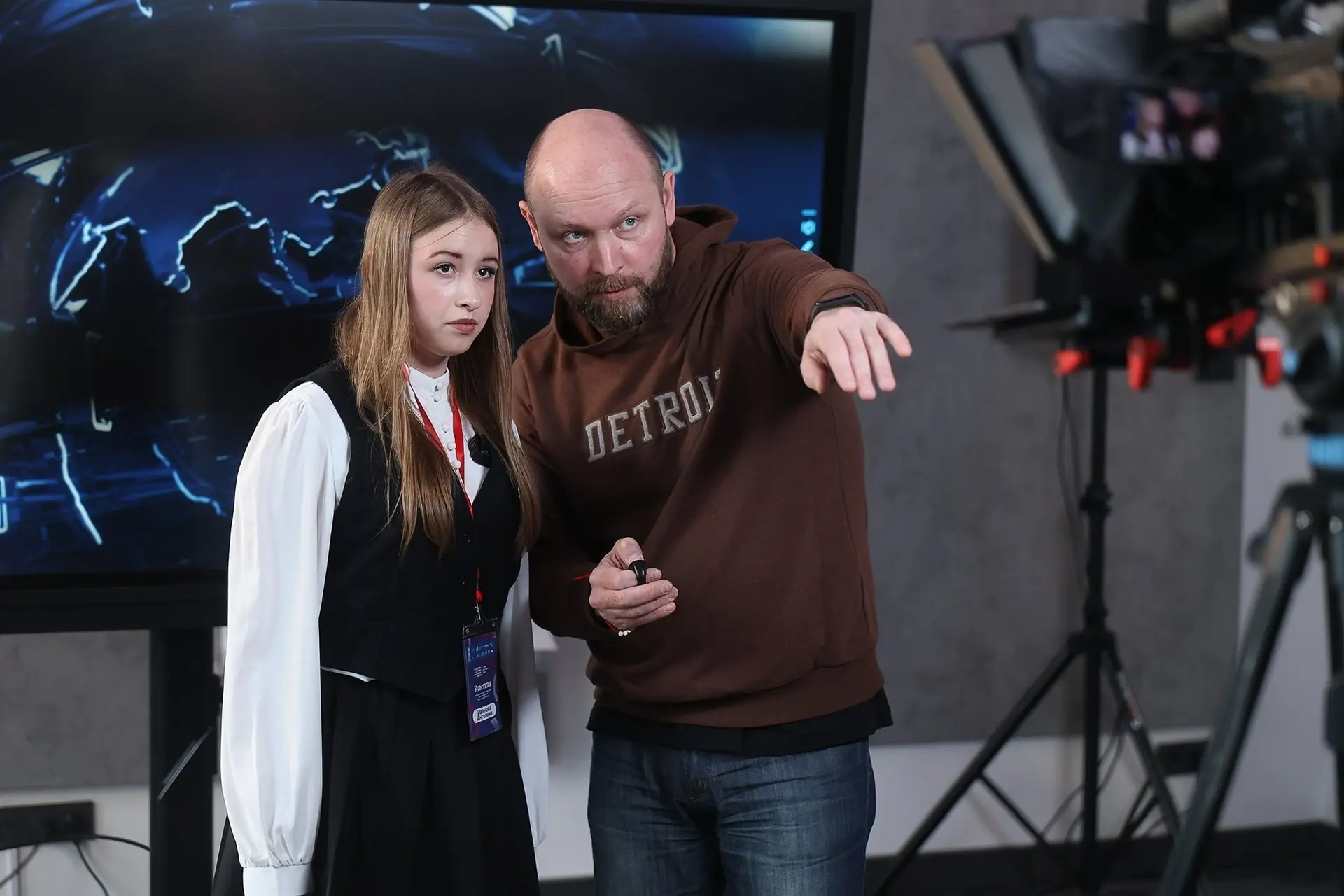 «Ребята очень переживали, но это хорошее волнение. Я объяснял как управлять скоростью бегущей строки и как правильно интонировать — чтобы зритель тебе поверил», — поделился Константин Матейко.