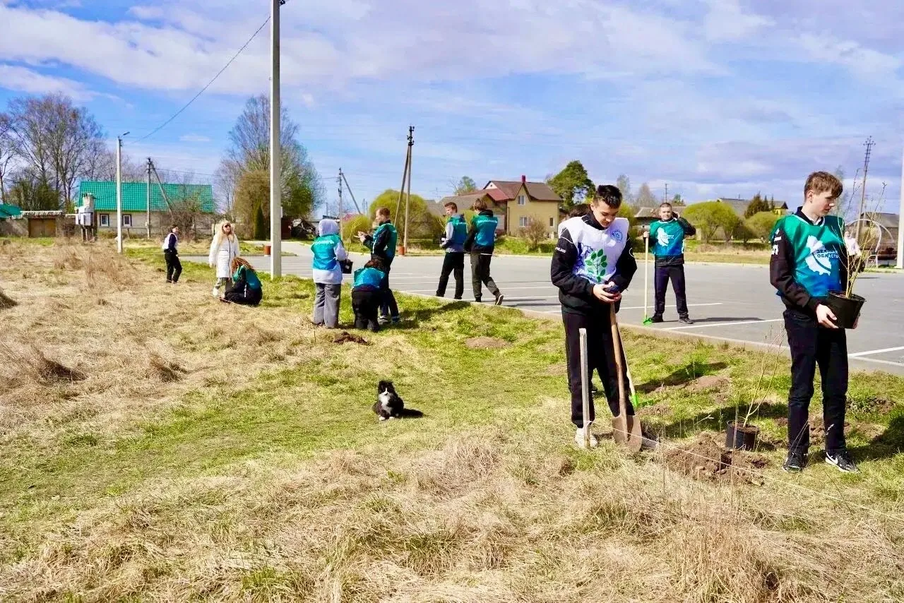 К высадке деревьев присоединились ученики 9А класса Моглинской школы, глава Псковского района Наталья Фёдорова и председатель молодёжного совета при министерстве молодёжной политики Псковской области Сергей Елизаров.