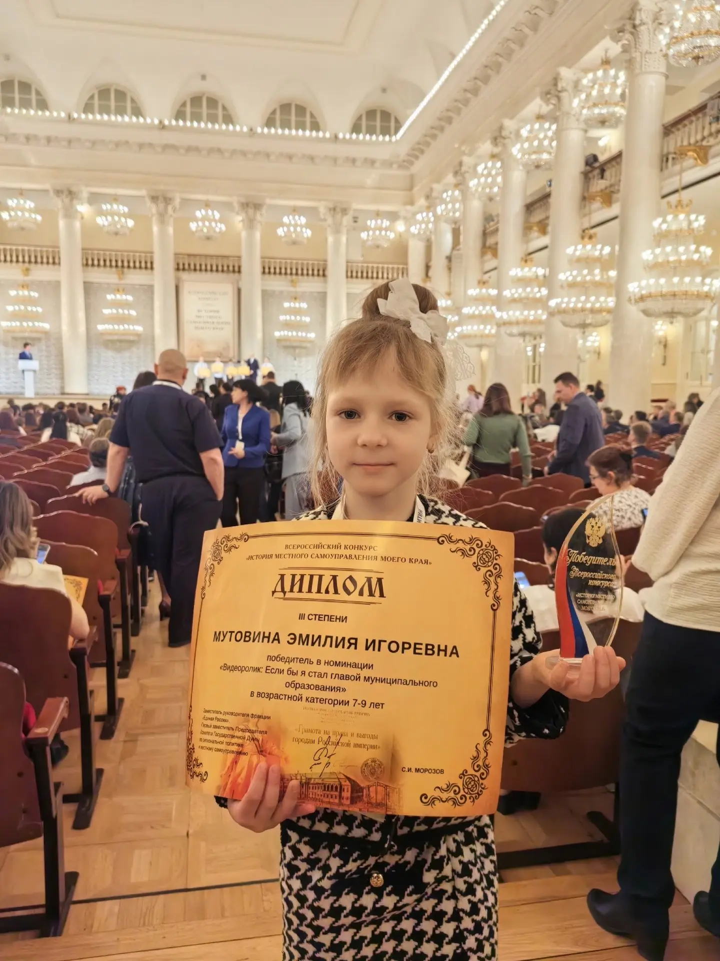 Работу Эмилии высоко оценило жюри конкурса и пригласило девочку на очный этап в Москву. Защита проекта проходила без родителей в Московском государственном технологическом университете. В результате Эмилия стала призером 10-го юбилейного Всероссийского конкурса "История местного самоуправления моего края".