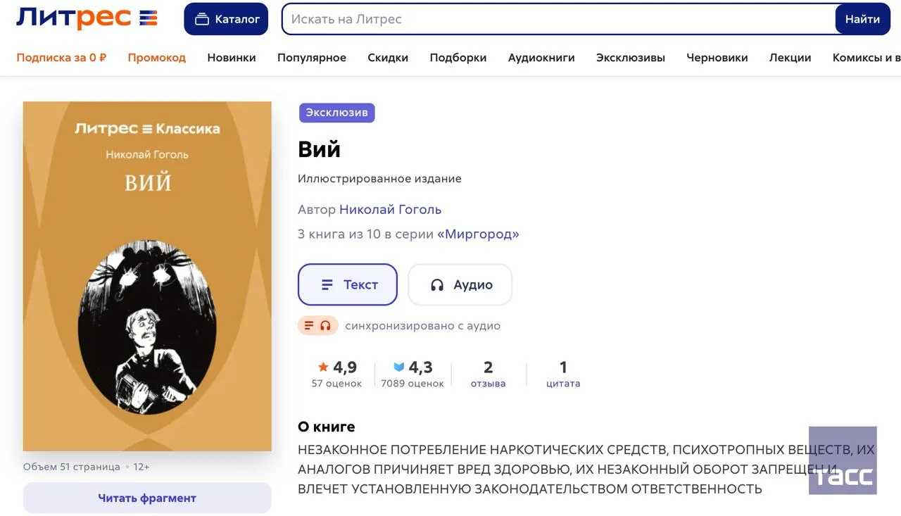 "Литрес" изучает ситуацию с маркировкой текстов Пушкина, Гоголя, Тургенева, Булгакова и Алексея Толстого в рамках закона о запрете пропаганды наркотиков — пресс-служба "Литрес"