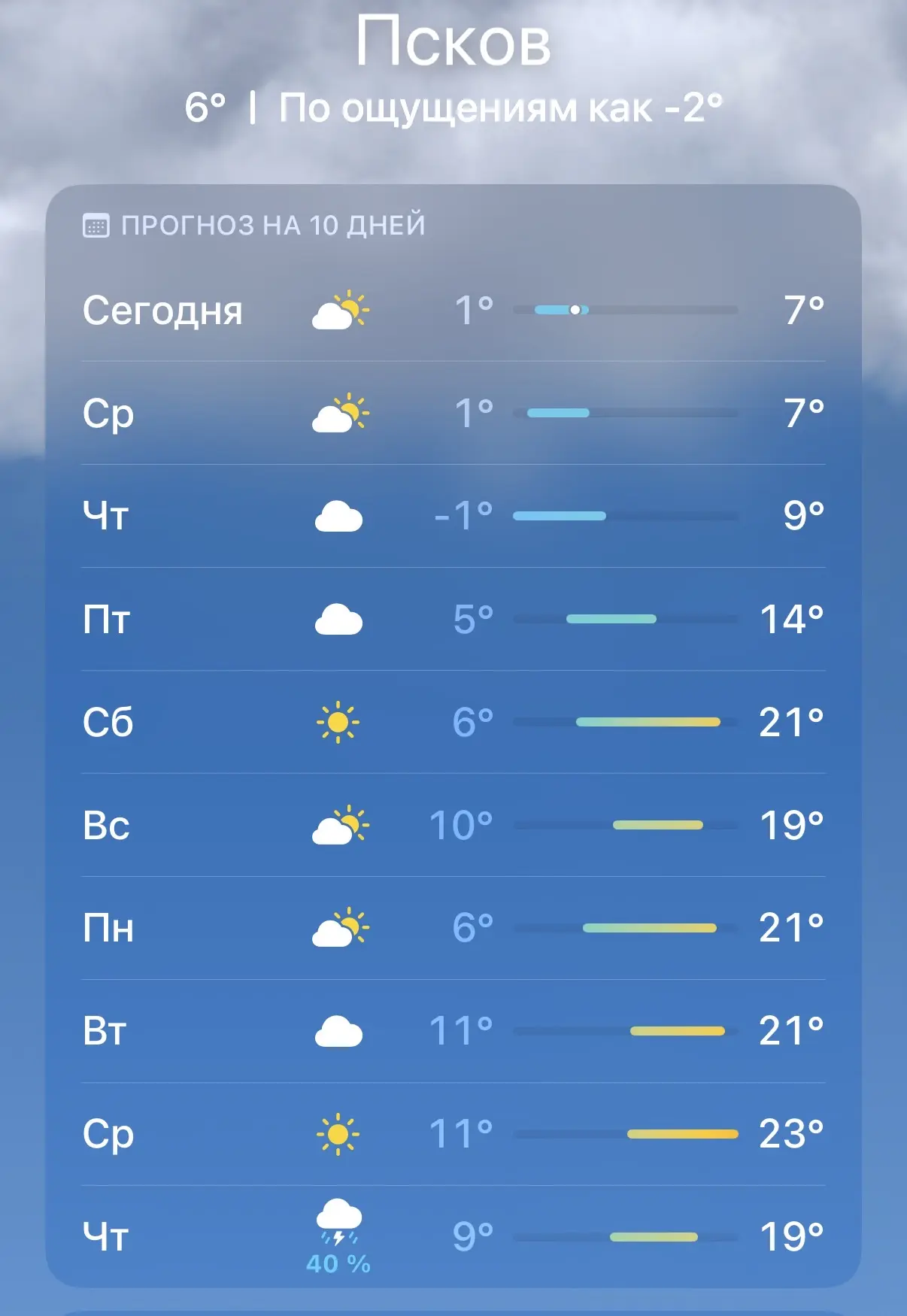 Дорогие псковичи, мы внимательно следим за прогнозом погоды! По данным синоптиков, с 1 мая ожидается потепление.