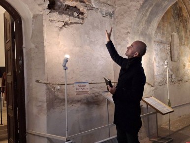 Новый подрядчик приступил к работам в феврале этого года. Рабочие завершили установку строительных лесов с внешней стороны стены и приступили к отделке внутренней. Был расчищен и промыт боевой ход и фасад, из специальных карьеров доставлен камень....