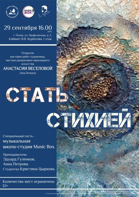 29 сентября там пройдет сразу несколько мероприятий.В 16:00 в кабинете Курбатова областной библиотеки состоится открытие выставки работ псковской художницы Анастасии Веселовой "Стать стихией". В экспозиции будут...