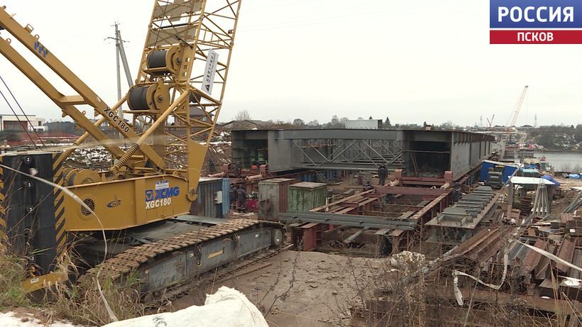 Сейчас работы ведутся параллельно в нескольких местах. На правом берегу реки Великой, в районе деревни Хотицы, рабочие проводят сборку пролетного строения будущего моста. С помощью специальной выдвижной конструкции его впоследствии установят на опоры....